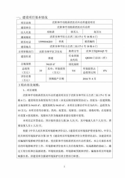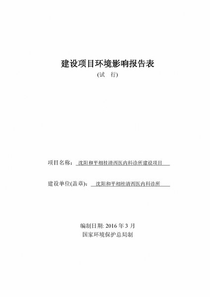 沈陽市于洪區大潘衛生院——環評報告表全本公